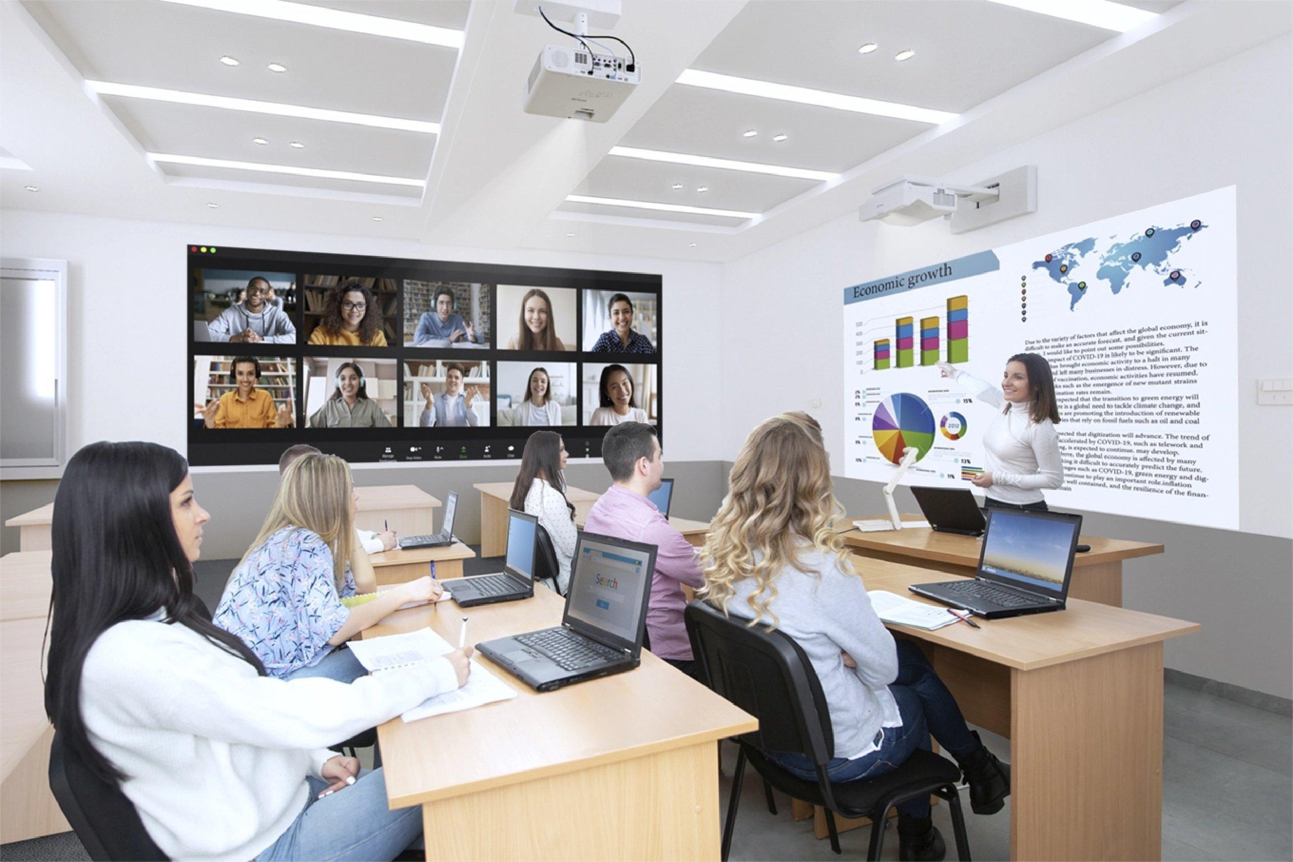 Vo vzdelávacom prostredí je správna veľkosť plátna pre efektívne učenie nevyhnutná. Rad projektorov od spoločnosti Epson ponúka flexibilné riešenia, ktoré vyhovujú rôznym veľkostiam učební a vyučovacím metódam a podporujú interaktívne a pútavé vzdelávanie.
