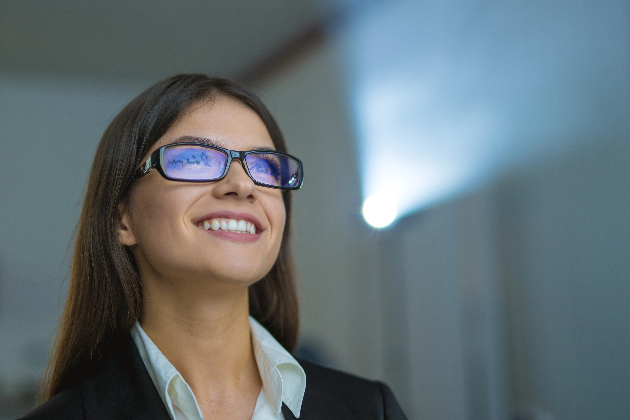 • Šetrné k očiam: Displeje RGB sa pri dlhšom pohľade zblízka môžu javiť štvorčekovane (napríklad počas interaktívnych prezentácií či pri dlhej práci), čo môže priveľmi namáhať oči. Na druhej strane majú projektory menej pixelizácie než ploché obrazovky a vďaka automatickému nastaveniu jasu sa na ne pohodlne môžete pozerať aj dlhší čas.